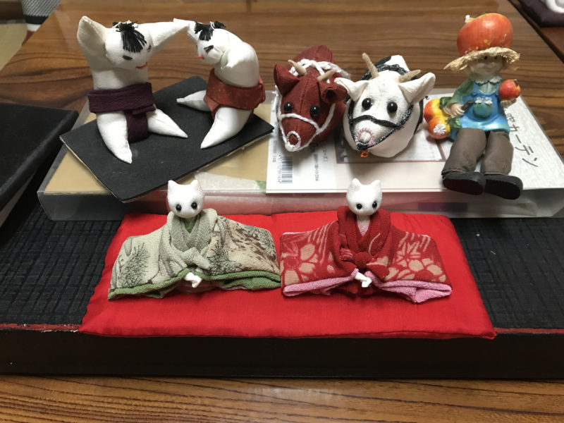 続きを読む当店に70年ほど前に勤めていただいていた、90歳以上になる女性の方が、趣味で作ったものを頂いたものです。大変可愛らしいと好評です。 当店で差し上げた絹の白生地の端切れを使って作られています。やはり、動 …